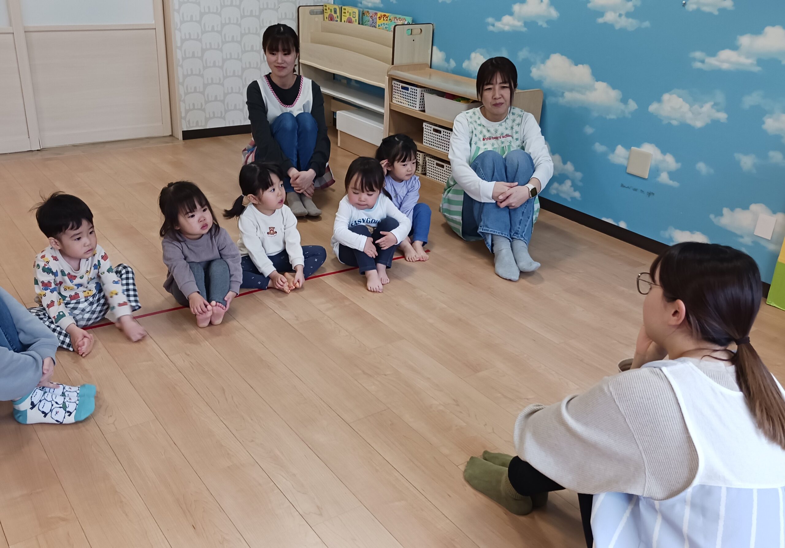 小さいクラスの子どもたちも、しっかり保育士の話を聞いていますね✨