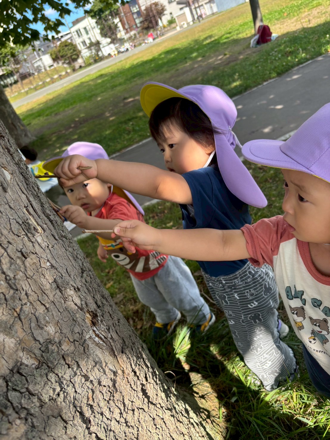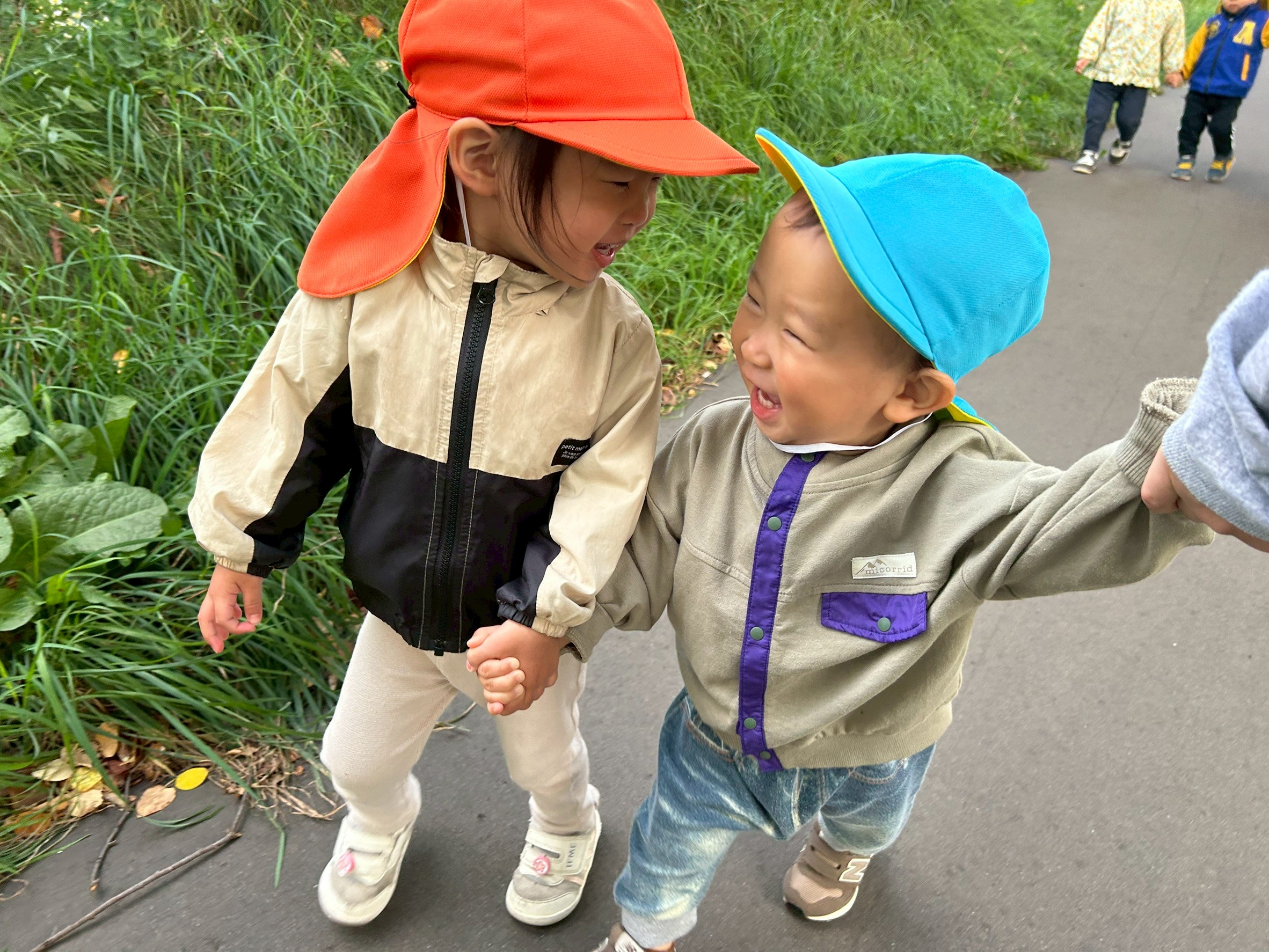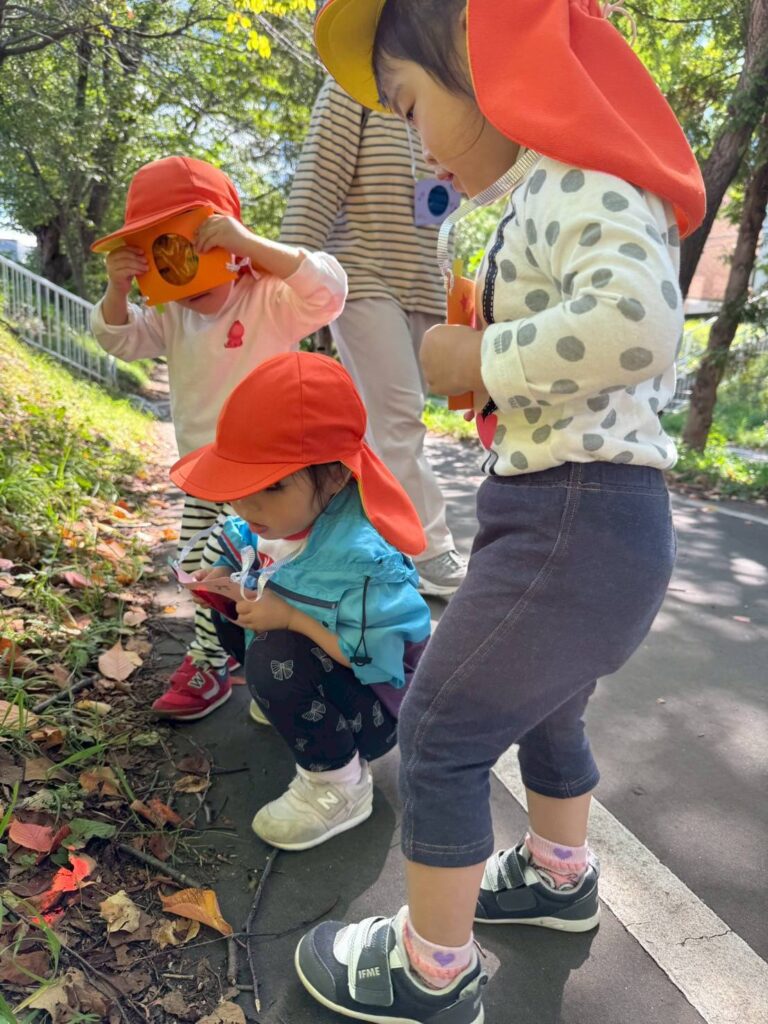 子どもたちは、「葉っぱあったー!」「きのこ見つけた!🍄」と秋ならではの自然物を発見しながら戸外活動を楽しんでいます🤭💕