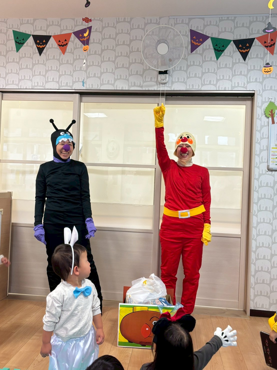 あんぱんまんとばいきんまんに仮装した園長先生と看護師さん♪
