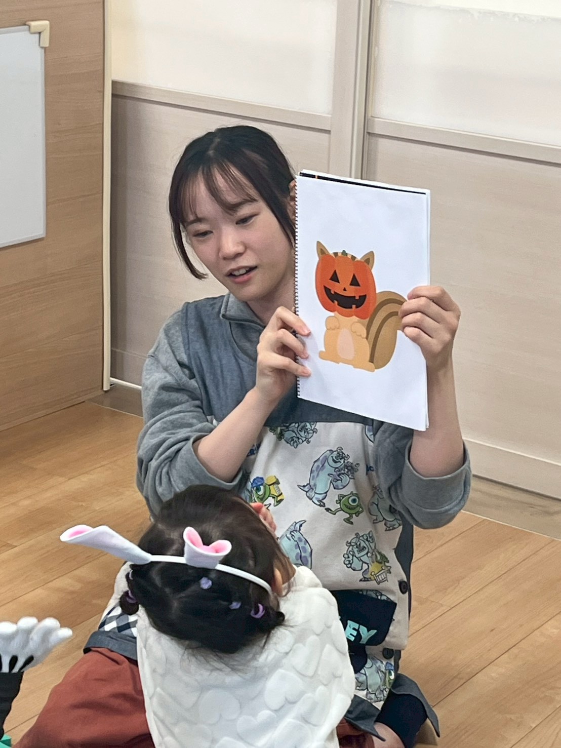 ハロウィンパーティーのはじめは、担当保育士によるスケッチブックシアターからスタート✨