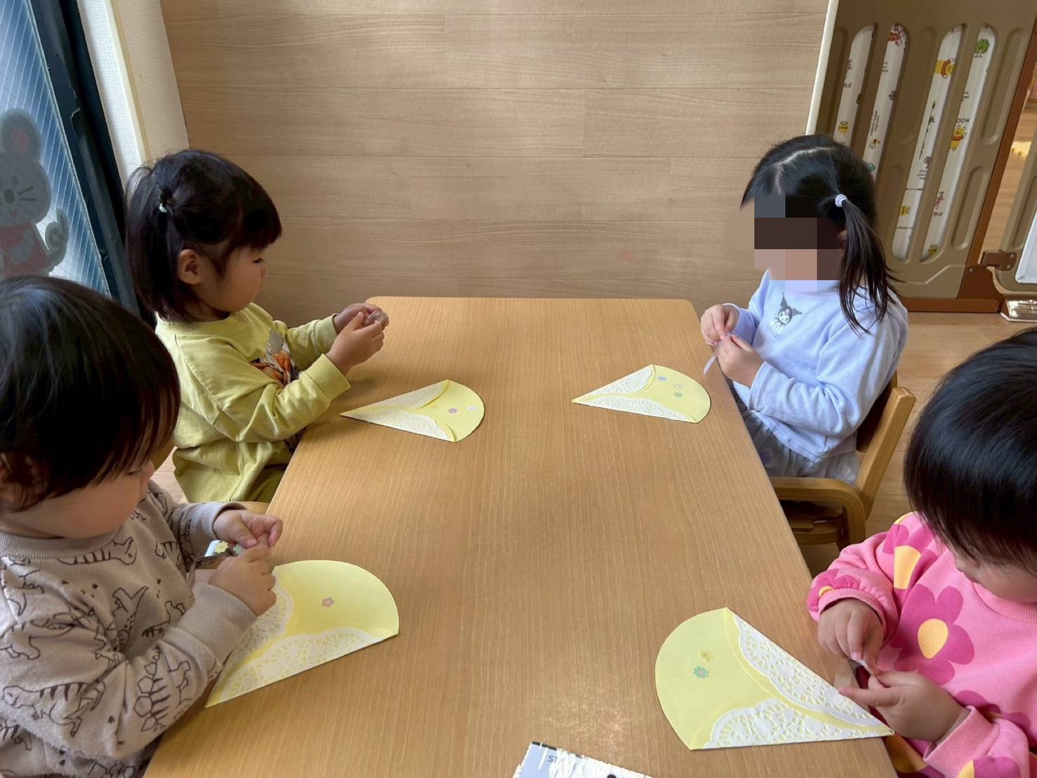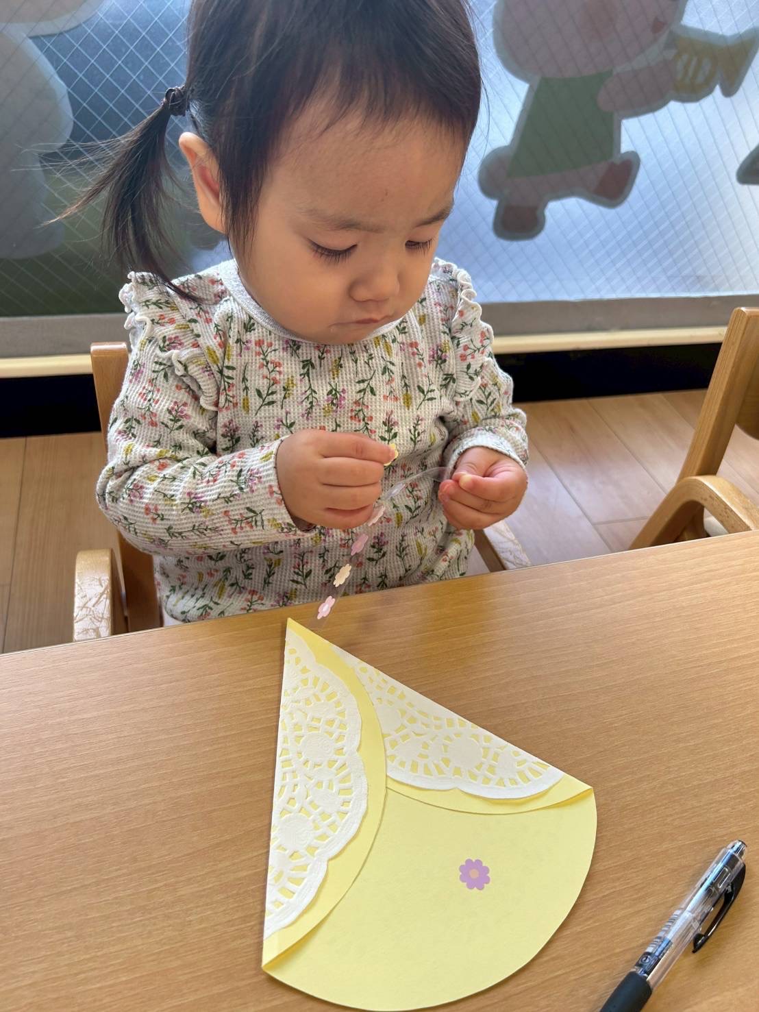 うさぎ組さん🐰は、お花のシールをペタペタ貼って、素敵な花束を作りましたよ💐✨