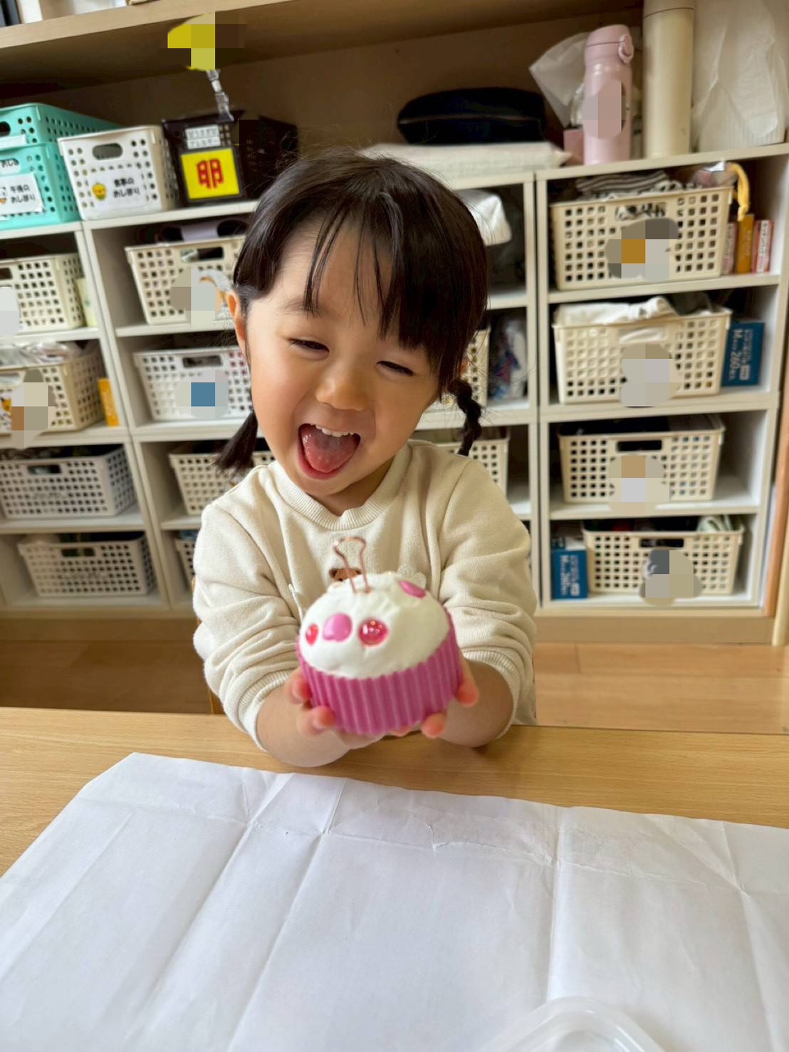 完成した作品を見て嬉しそうですね😍