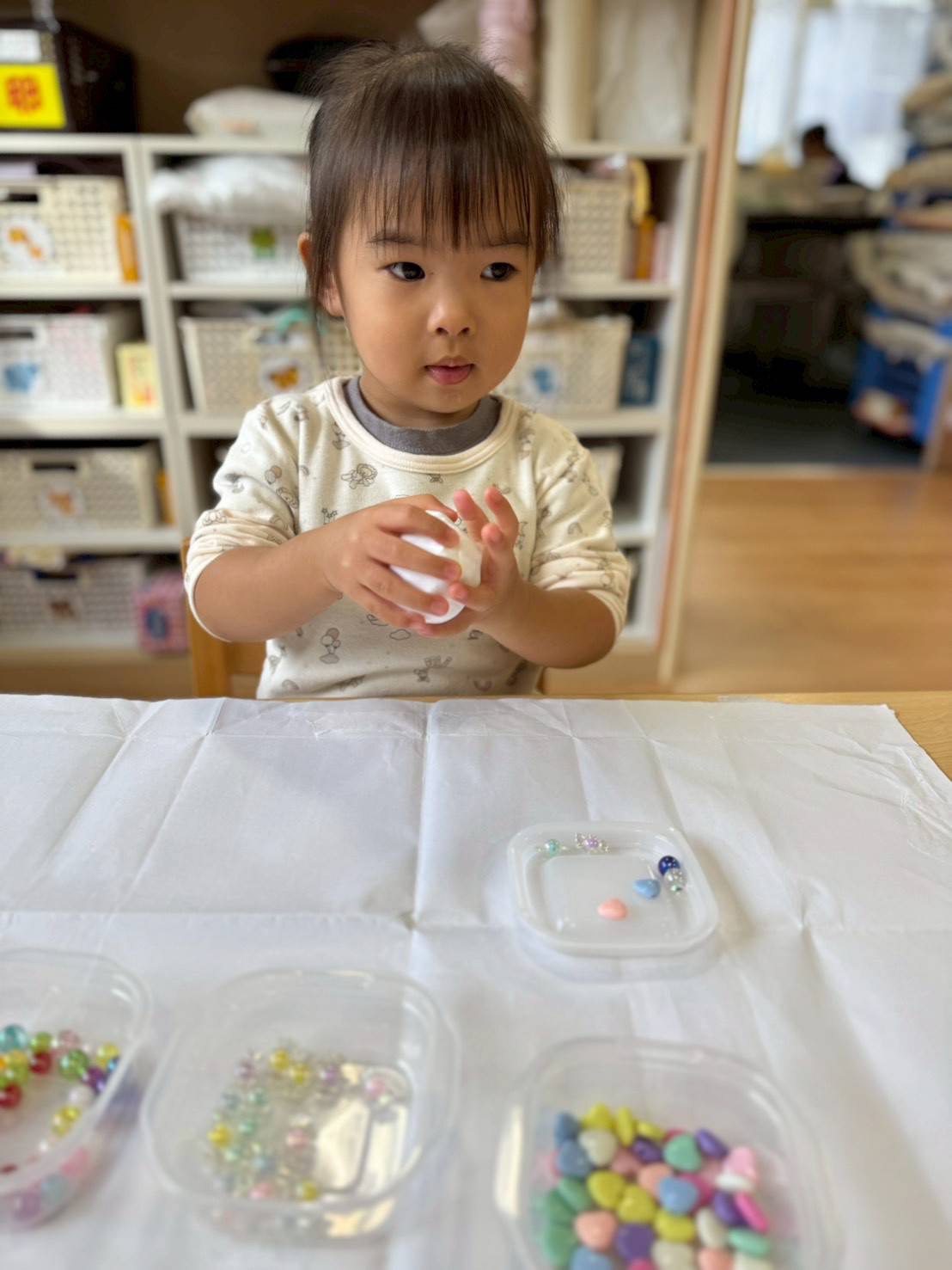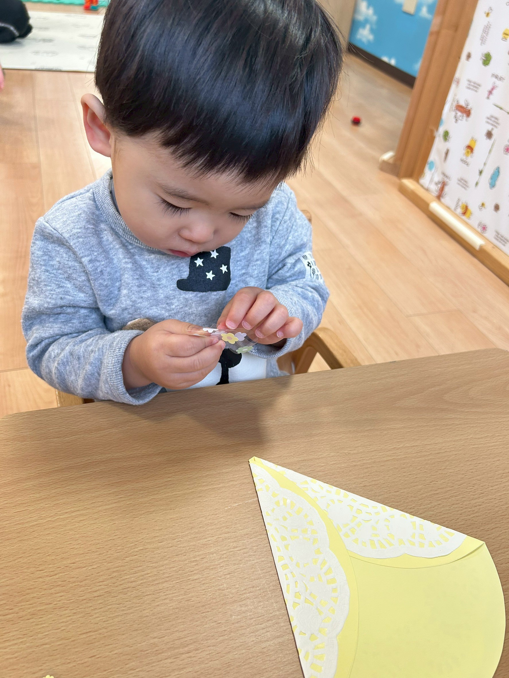 とても小さなシールをシール台紙から剝がすのもすごく上手でした👏✨