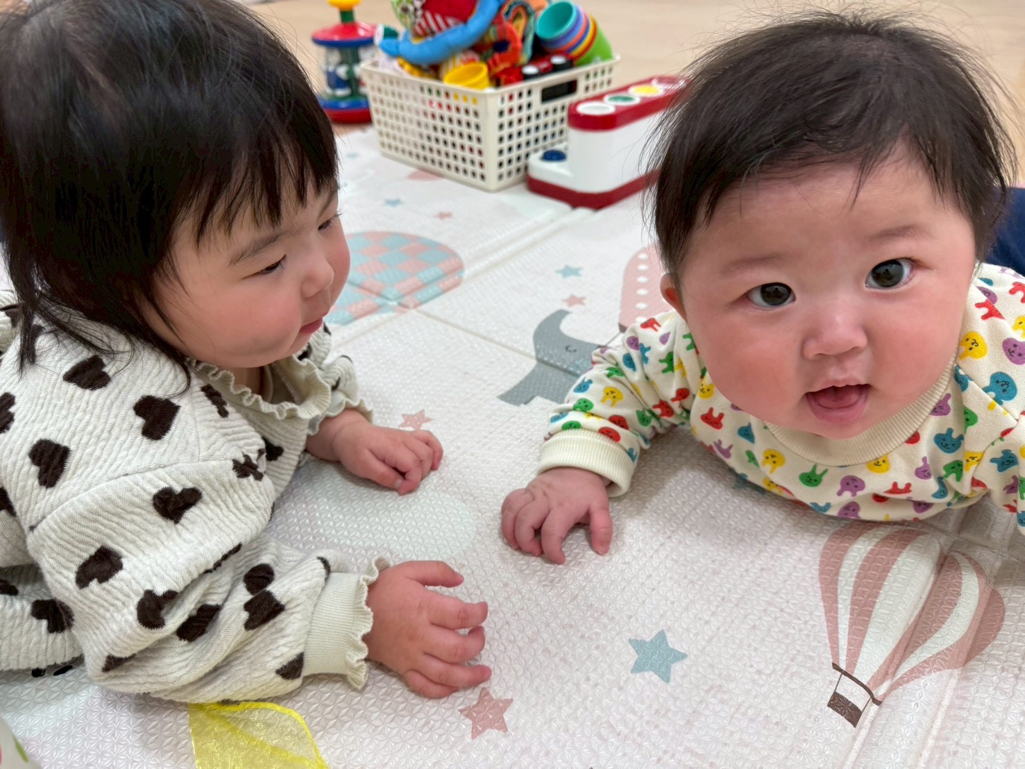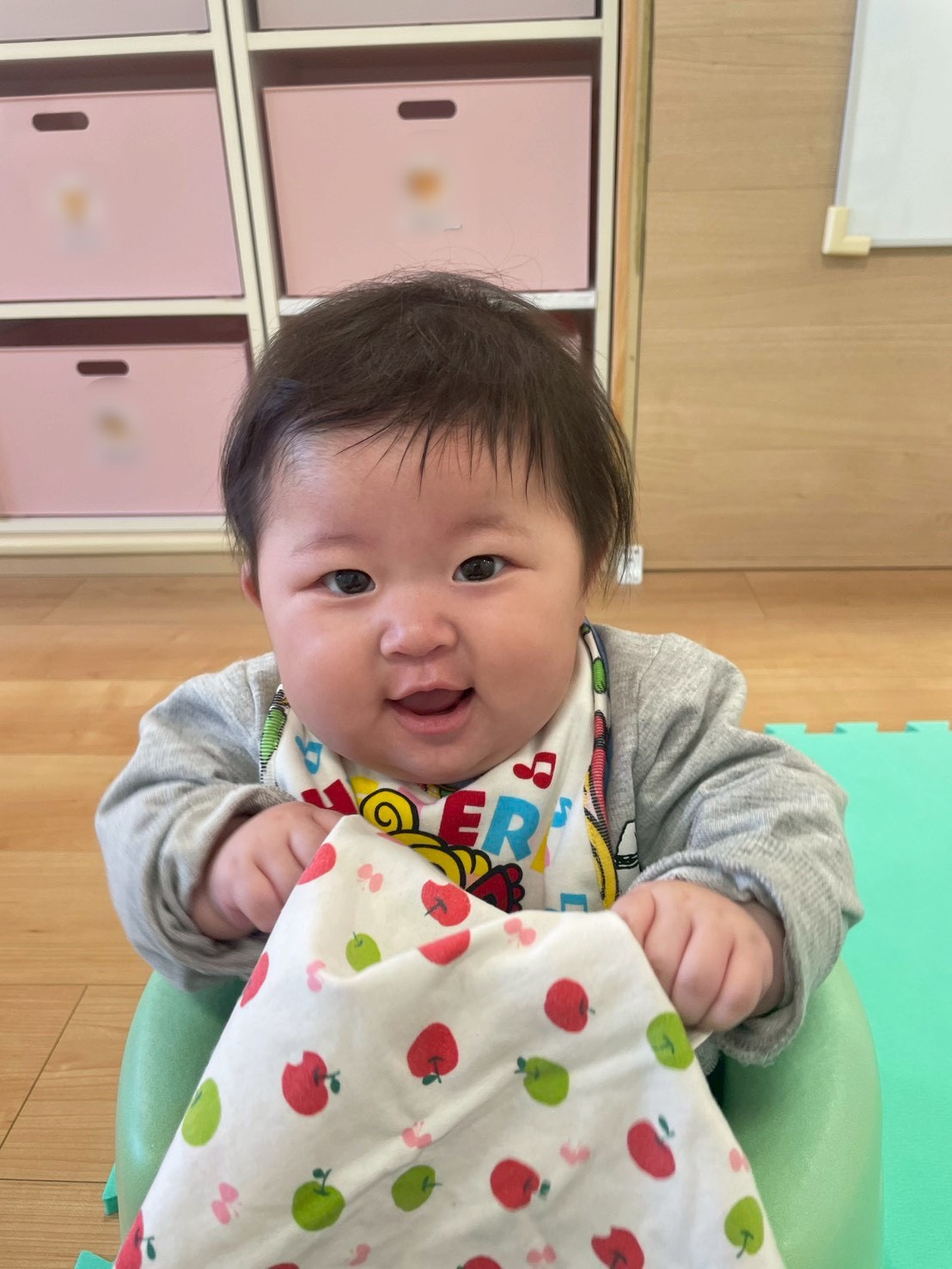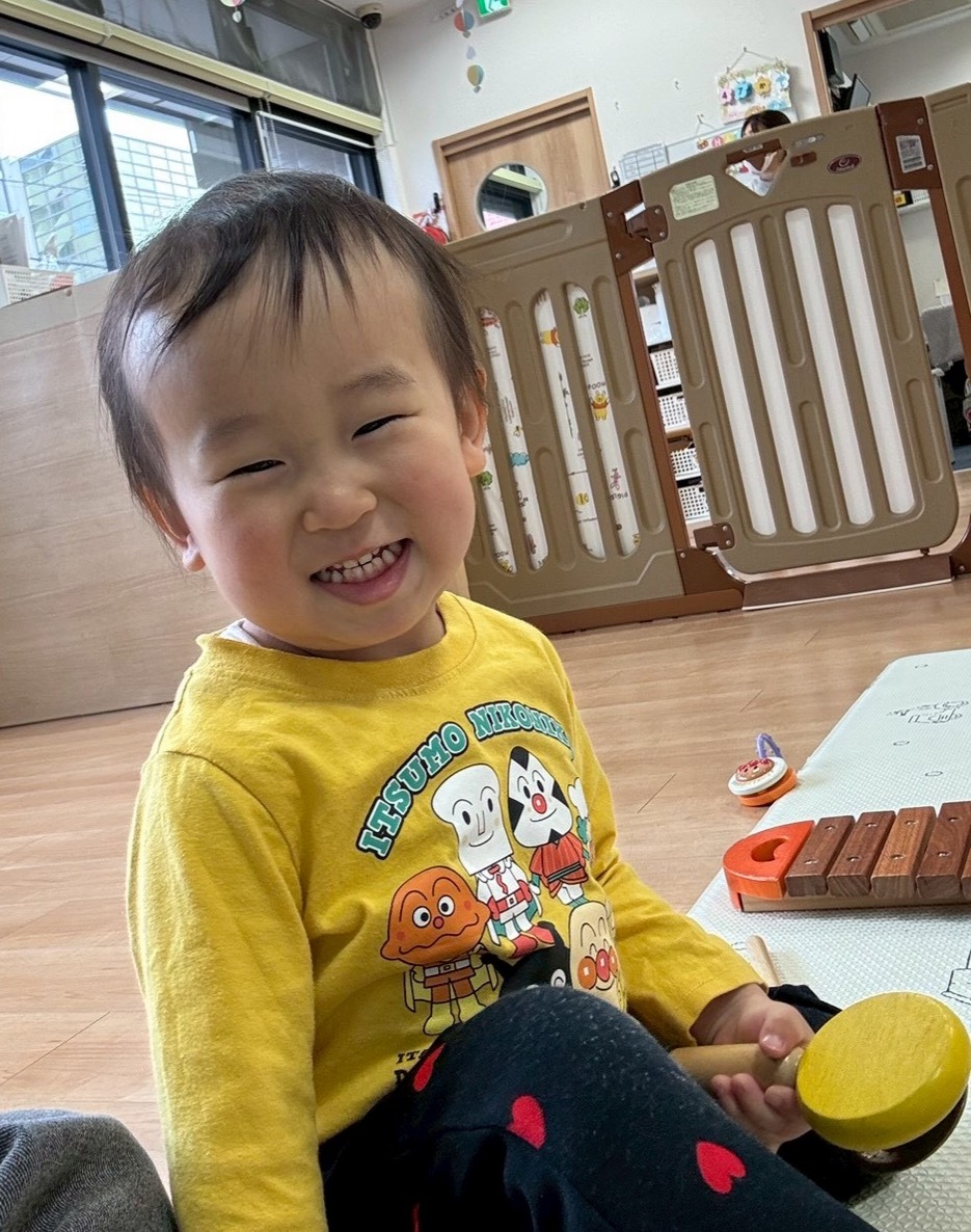 初めての保育室で、ちょっぴり緊張した様子の子どもたちですが少しずつ笑顔も見られるようになって来ました😊