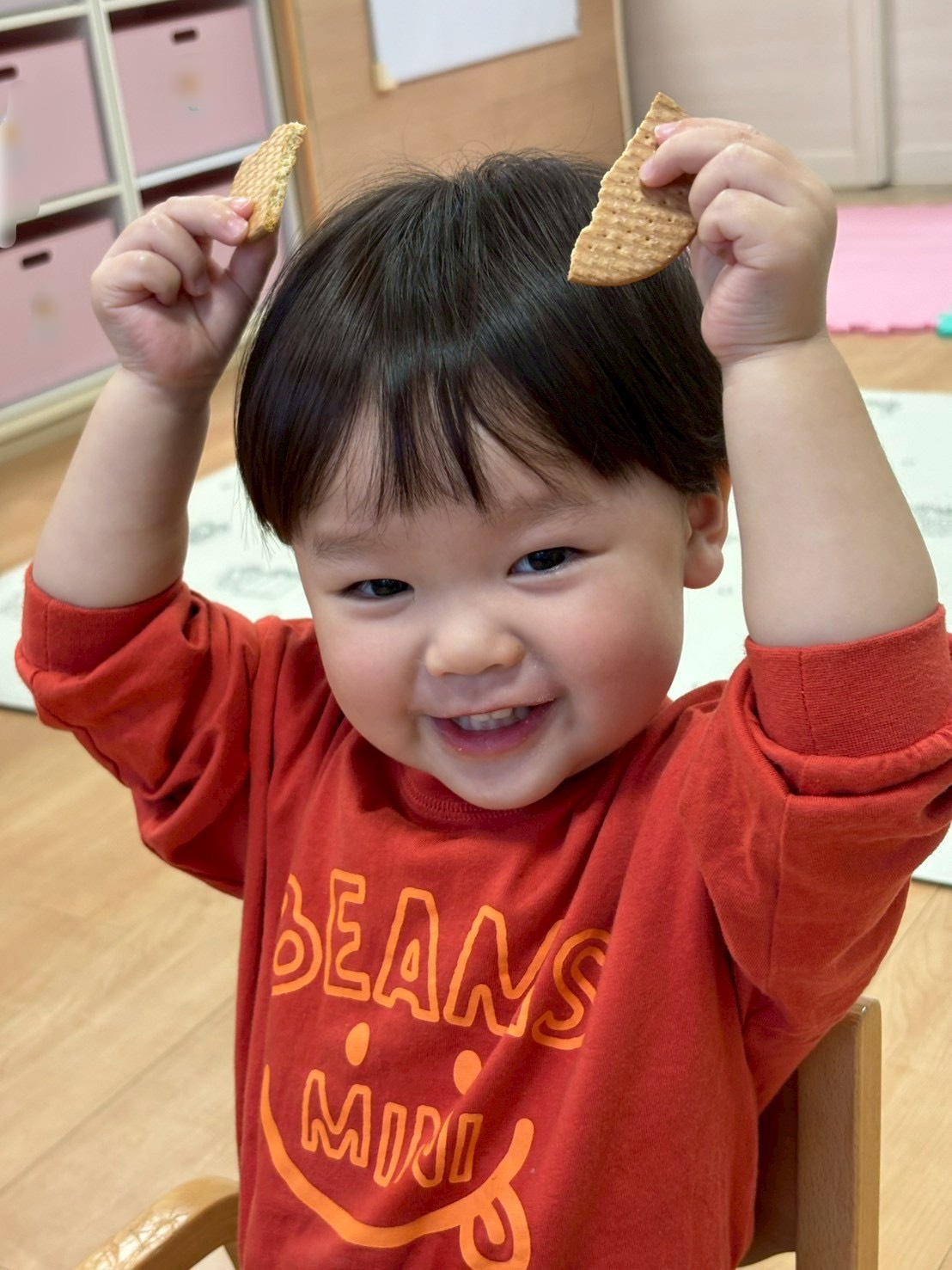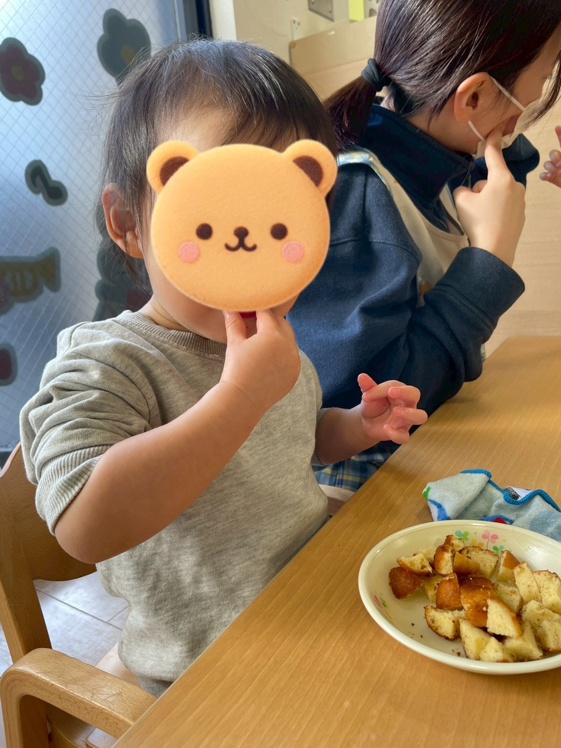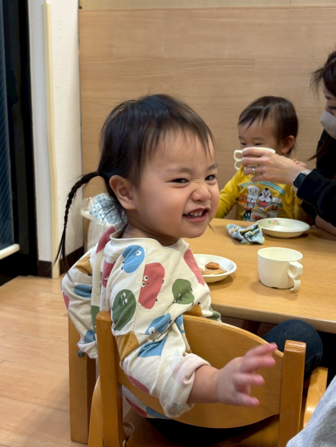 初めての保育室で、ちょっぴり緊張した様子の子どもたちですが少しずつ笑顔も見られるようになって来ました😊