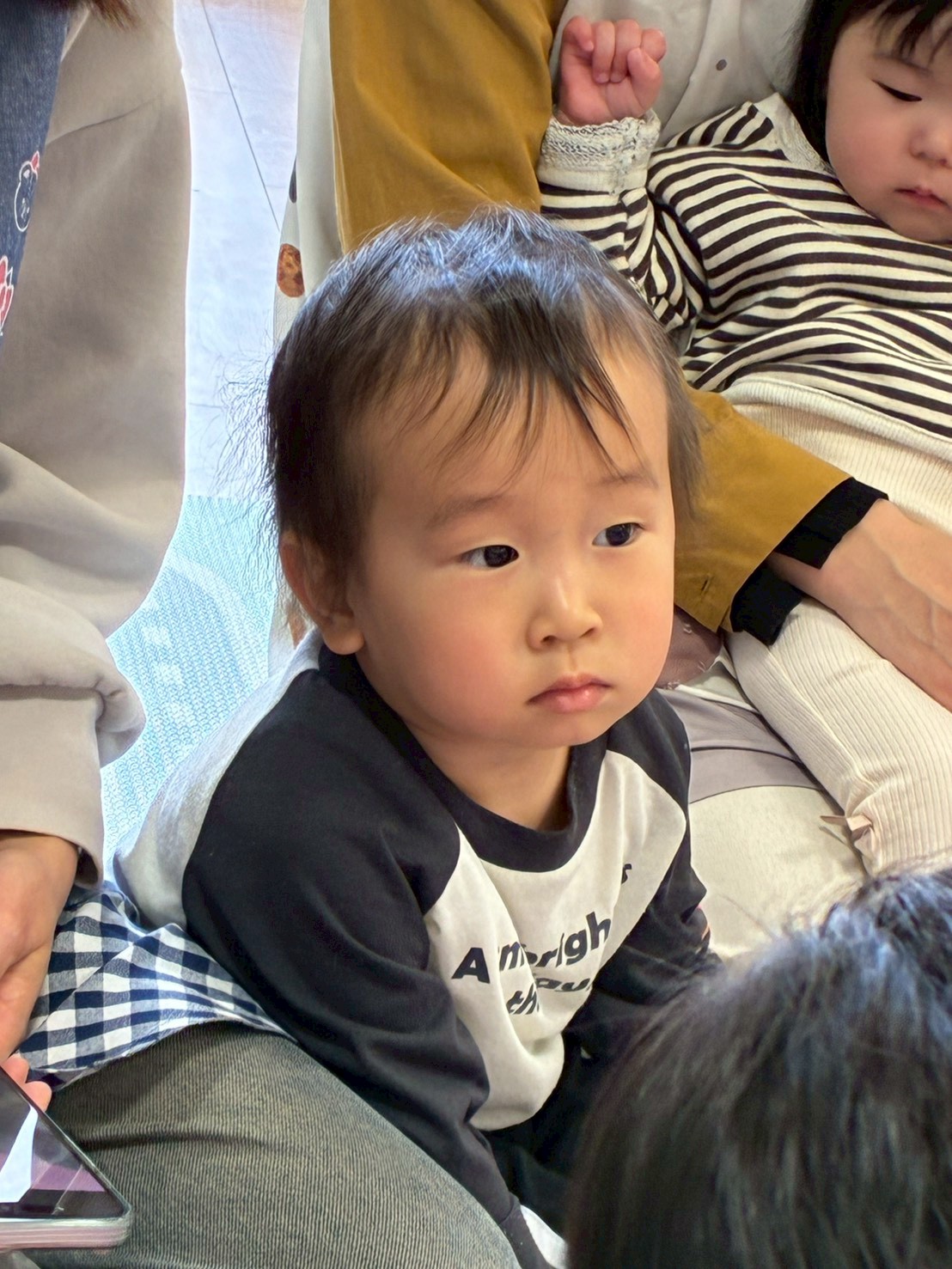 T君はドキドキ、、、!質問されたマイクを押しのけていました(笑)でも、最後までしっかり座ることができましたよ🤭