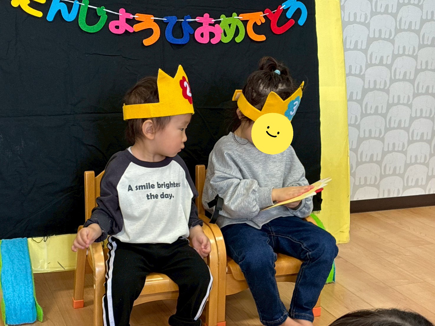 最後は担任からバースデーカードのプレゼント🎁カードをもらうとまじまじと見ていた二人でした💕